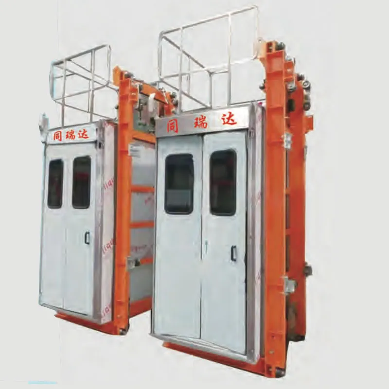 •吊笼⾼度3⽶⽅便长料运输;。吊笼顶部配置装机平台,便于电梯井内安装和拆卸;